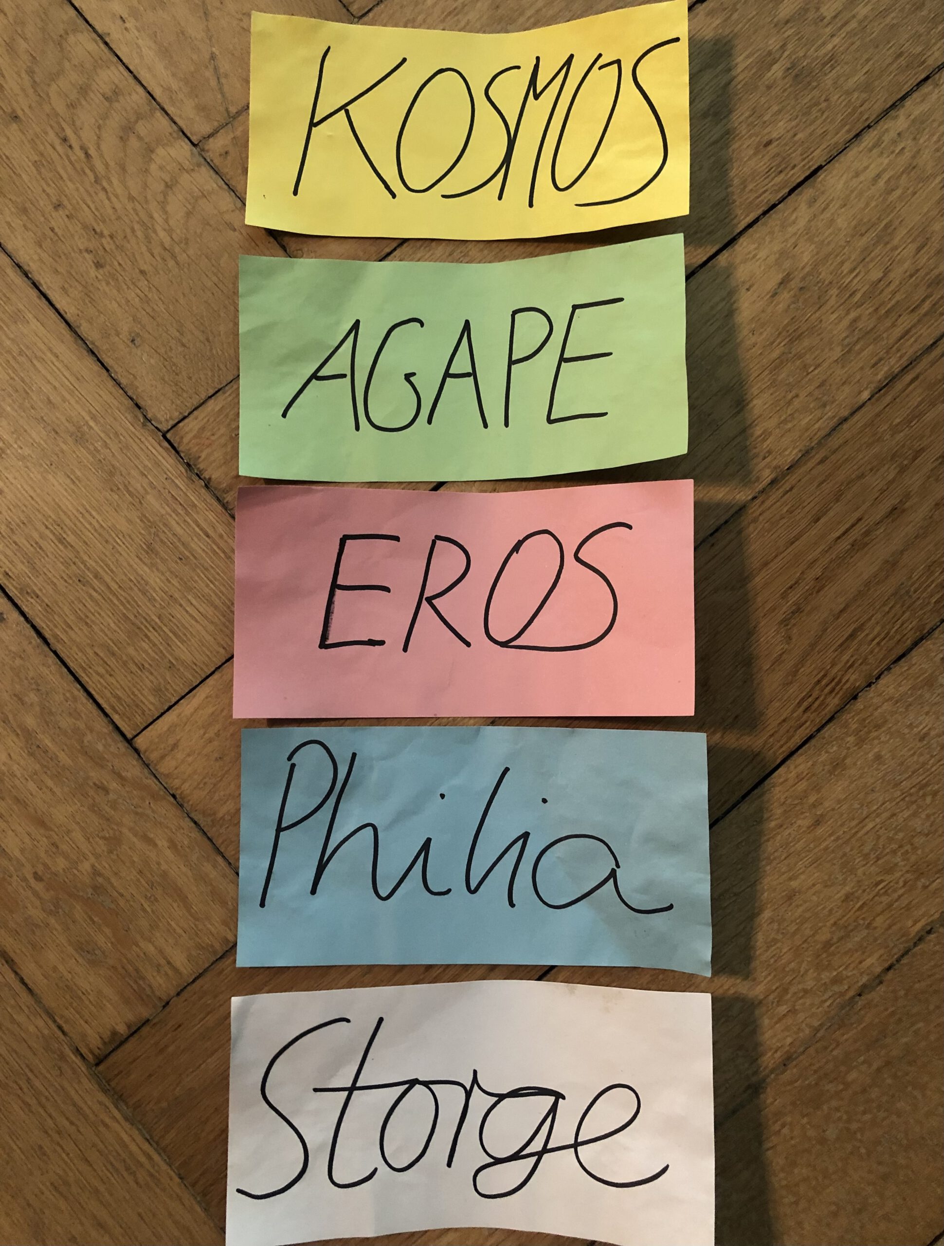 Diese 5 Liebesfelder sind Storge – das Liebesfeld der Familie, Philia – das Liebesfeld der Freundschaft, Eros – das Liebesfeld der erotischen Beziehungen, aber auch der Lebenskraft an sich, Agape – das Feld der göttlichen und bedingungslosen Liebe und Kosmos – das kosmische Liebesfeld, in dem sich die Erfahrungen nichtirdischer Inkarnationen zeigt.